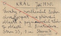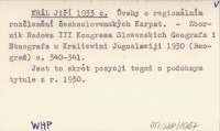 KRÁL Jiří 1930 Úvahy o rozčlenění československých Karpat na přírodní oblasti a pojmenování těchto oblastí.
