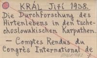 KRÁL Jiří 1936 Zpráva o činnosti československé sekce Komise slovanské pro výzkum salašnictví v Karpatech a na Balkáně za léta 1931-1936.