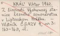 KRÁĄ Viktor 1962 Z činnosti Výskumnej stanice lesného semenárstva v Liptovskom Hrádku.