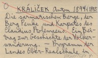 KRÁLIČEK Anton 1894 i 1895 Die sarmatischen Berge, der Berg Peuke und Karpates des Claudius Ptolemaeus. Ein Beitrag zur Geschichte der Völkerwanderung.