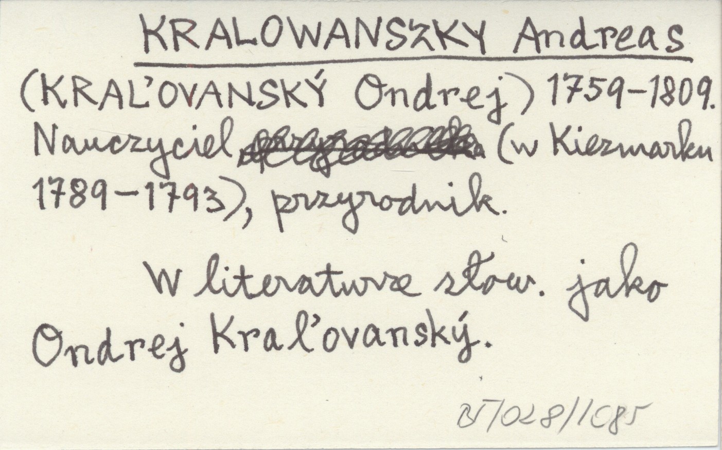 1759-1809. Nauczyciel (w Kiezmarku 1789-1793), przyrodnik. W literaturze słow. jako Ondrej Kra”ovanskę.