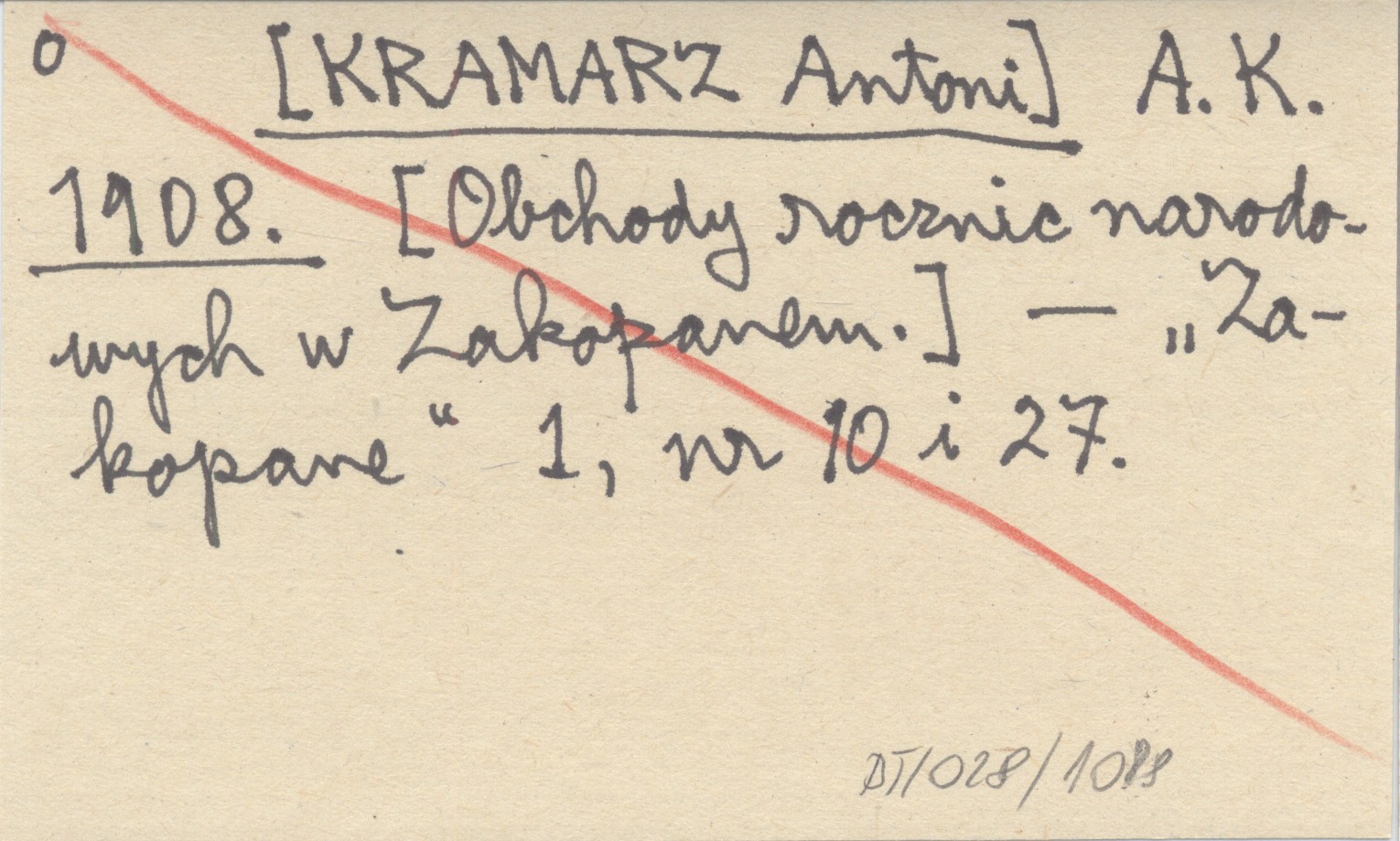 A. K. [KRAMARZ Antoni] 1908 [Obchody rocznic narodowych w Zakopanem.].