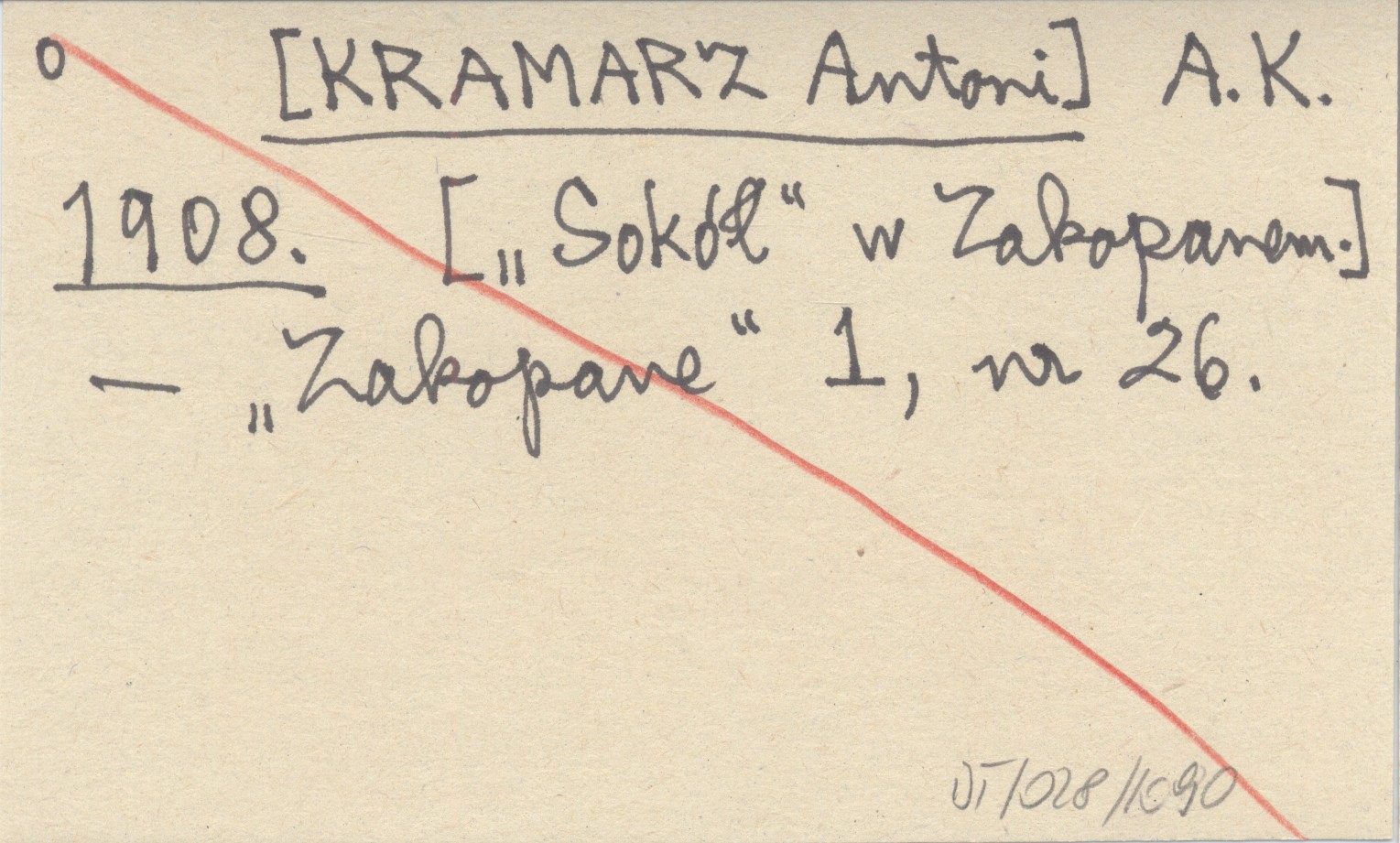 A. K. [KRAMARZ Antoni] 1908 ["Sokół" w Zakopanem.].