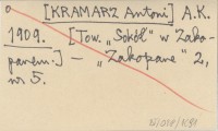 A. K. [KRAMARZ Antoni] 1909 [Tow. "Sokół" w Zakopanem.].