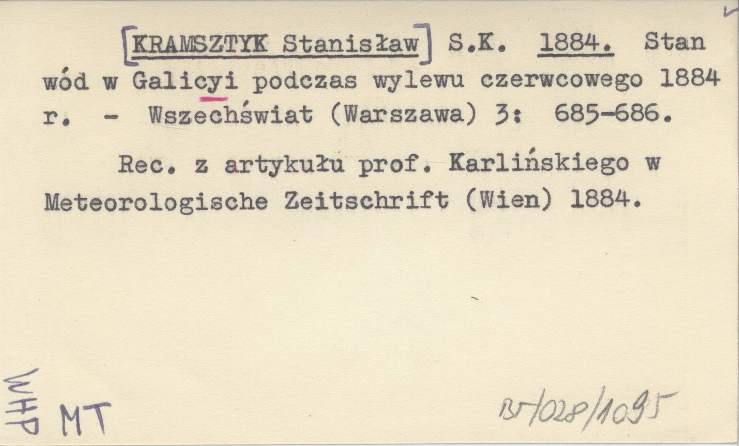 Wszechświat (Warszawa) , 3: 685-686. Rec. z artykułu prof. Karlińskiego w Meteorologische Zeitschrift (Wien) 1884.