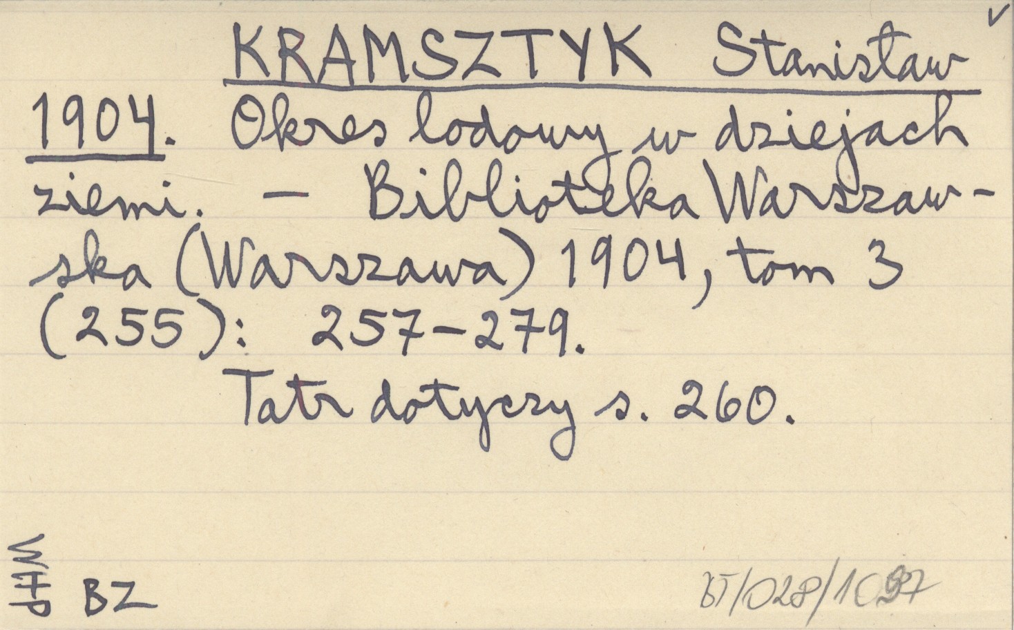 KRAMSZTYK Stanisław 1904 Okres lodowy w dziejach ziemi.