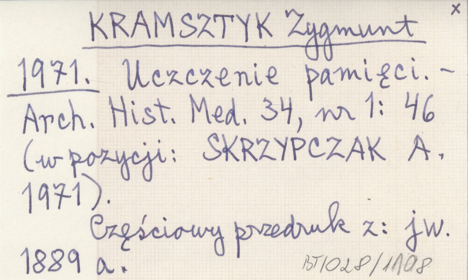 SKRZYPCZAK A. 1971. Archiwum Historii Medycyny, 34, nr 1: 46 Częściowy przedruk z: jw. 1889 a
