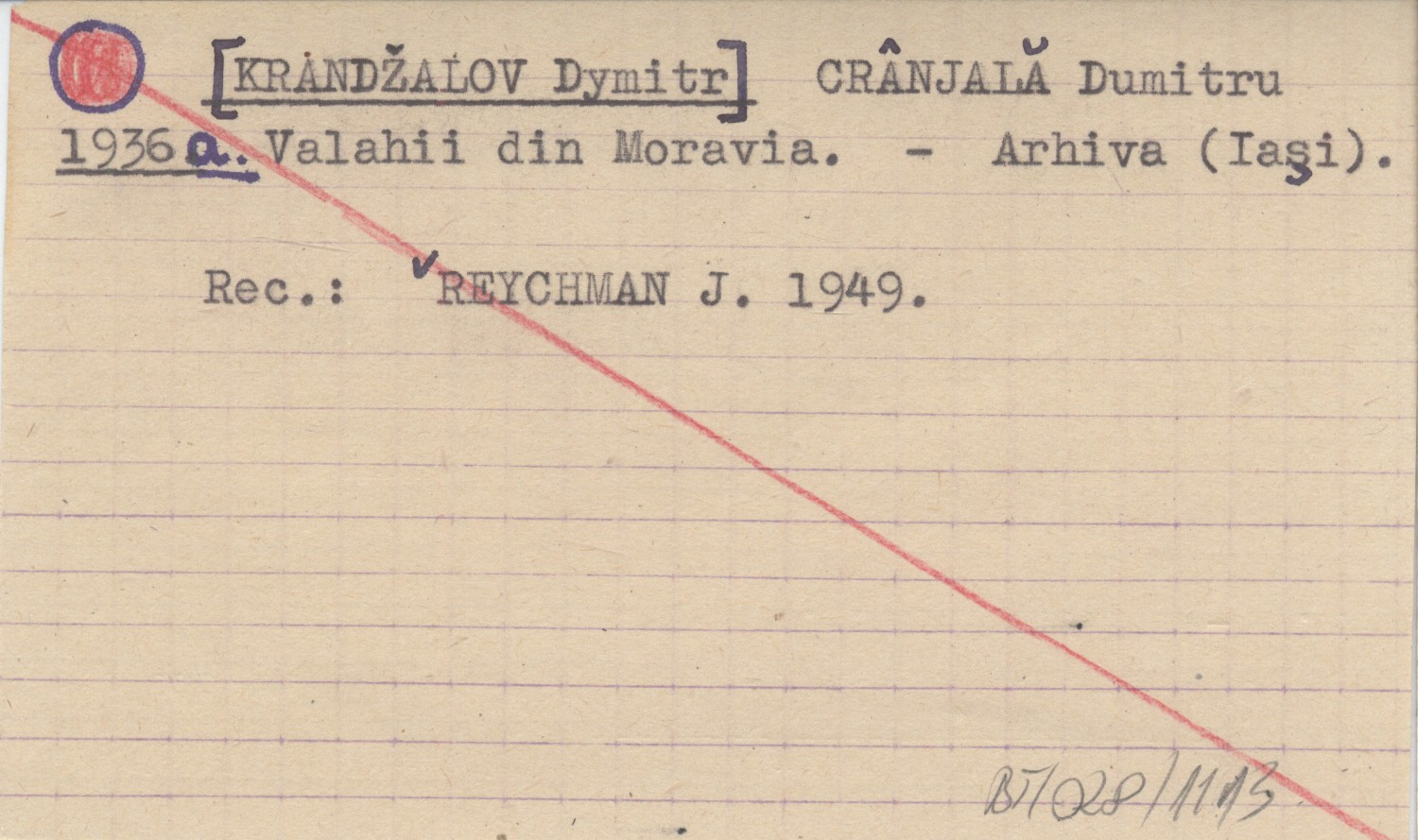 [KRANDŽALOV Dymitr] CRÂNJALĂ, Dumitru. ; 1936 a Valahii din Moravia.