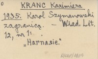 KRANC Kazimierz 1935 Karol Szymanowski zagranic±.
