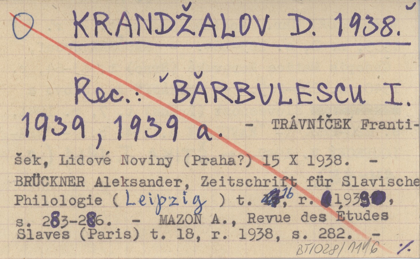 REC: BÃRBULESCU I. 1939, 1939 a ; TRÁVNÍÈEK Franti¹ek, Lidové Noviny (Praha?) 15 X 1938 ; BRÜCKNER Aleksander, Zeitschrift für Slavische Philologie (Leipzig) t. 16, r. 1939: 283-286 ; MAZON A., Revue des Études Slaves (Paris) t. 18, r. 1938: 282 ; WAKARELSKI Chr., Rodina (Sofia) t. 2, r. 1939, nr 2: 163-164 ; MACÙREK Josef, Èasopis Matice Moravské (Brno) t. 63-64, r. 1940: 203-205 ; HAVRÁNEK B., Slovo a Slovesnost (Praha) t. 7, r. 1941: 220-222 ; KAVULJAK A. 1941 b ; CHALOUPECKÝ V. 1947 ; ©TIKA J. 1961 (s. 94-95) ;