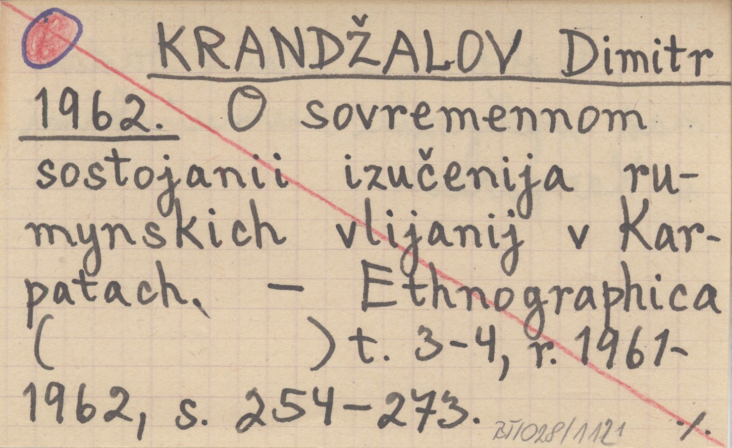 KRANDŽALOV Dimitr 1962 O sovremennom sostojanii izučenija rumynskich vlijanij v Karpatach.