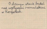 Ethnographica, T. 3-4, r. 1961-1962: 254-273. O obecnym stanie badań nad wpływami rumuńskimi w Karpatach.