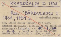 [KRAND®ALOV Dymitr] CRÂNJALĂ, Dumitru. ; 1938 Rumunské vlivy v Karpatech se zvláątním zřetelem k moravskému Valaąsku.