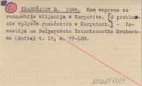 KRAND®ALOV D. 1944 Kam waprosa za rumanskite wlijanija w Karpatite. [O problemie wpływów rumuńskich w Karpatach.].