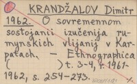 KRAND®ALOV Dimitr 1962 O sovremennom sostojanii izučenija rumynskich vlijanij v Karpatach.