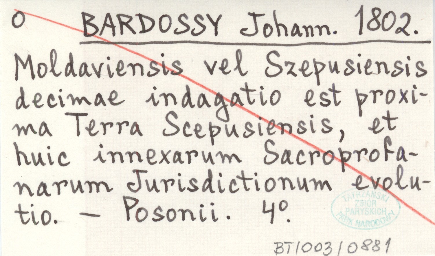 BARDOSSY Johann 1802 Moldaviensis vel Szepusiensis decimae indagatio est proxima Terra Scepusiensis, et huic innexarum Sacroprofanarum Jurisdictionum evolutio.