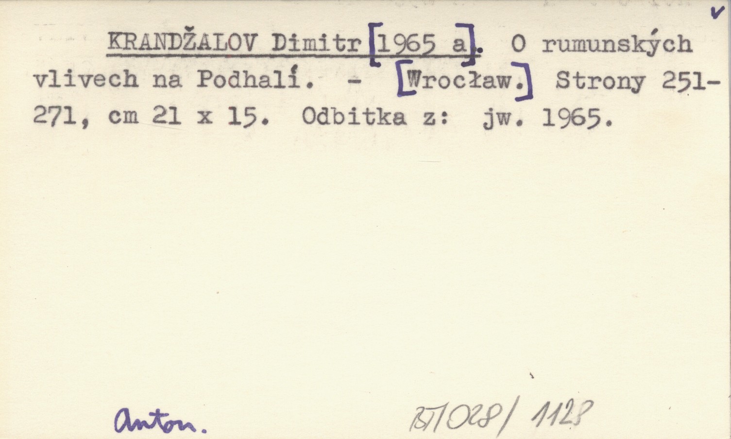 KRANDŽALOV Dimitr [1965 a] O rumunských vlivech na Podhalí.