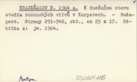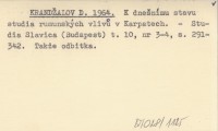 KRAND®ALOV D. 1964 K dne¹nķmu stavu studia rumunskżch vlivł v Karpatech.