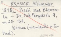 KRASICKI Aleksander 1848 Pie¶ń zpod Bieszczadu.