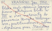 KRASIŃSKI Jan 1752 Polska czyli opisanie topograficzno-polityczne Polski w XVI w. oraz materiały do panowania Henryka Walezyusza, przetłumaczone, zebrane i objaśnione przez Stanisława Budzińskiego.