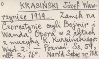 KRASIŃSKI Józef Wawrzyniec 1919... Zamek na Czorsztynie czyli Bojmir i Wanda. Opera w 2 aktach z muzyką K. Kurpińskiego.