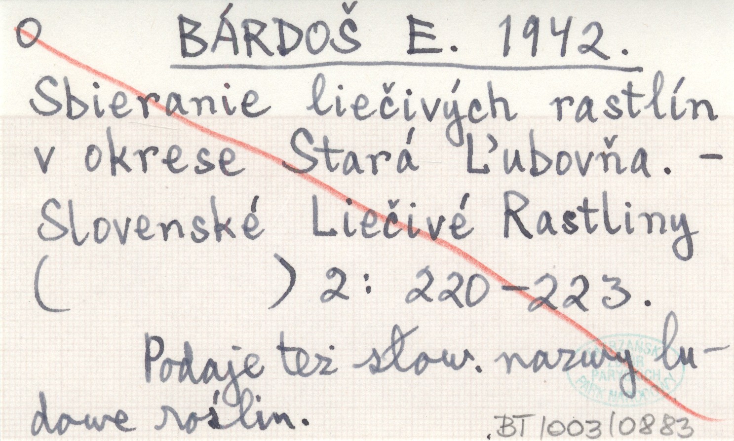 BÁRDOŠ E. 1942 Sbieranie liečivých rastlín v okrese Stará Ľubovňa.