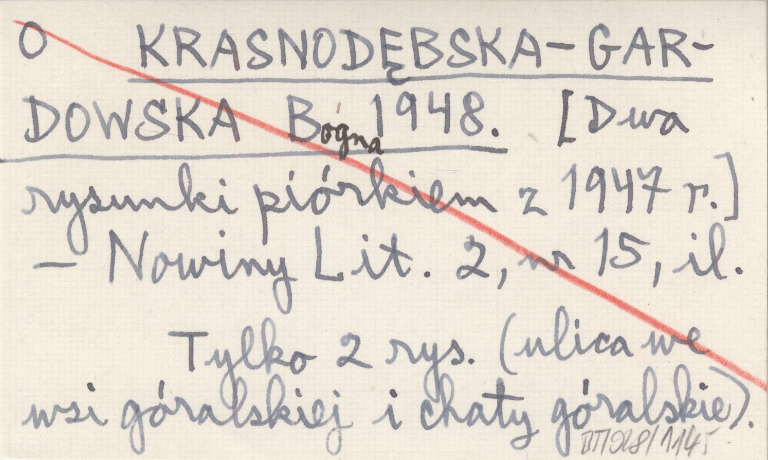 KRASNODĘBSKA-GARDOWSKA Bogna 1948 [Dwa rysunki piórkiem z 1947 r.].