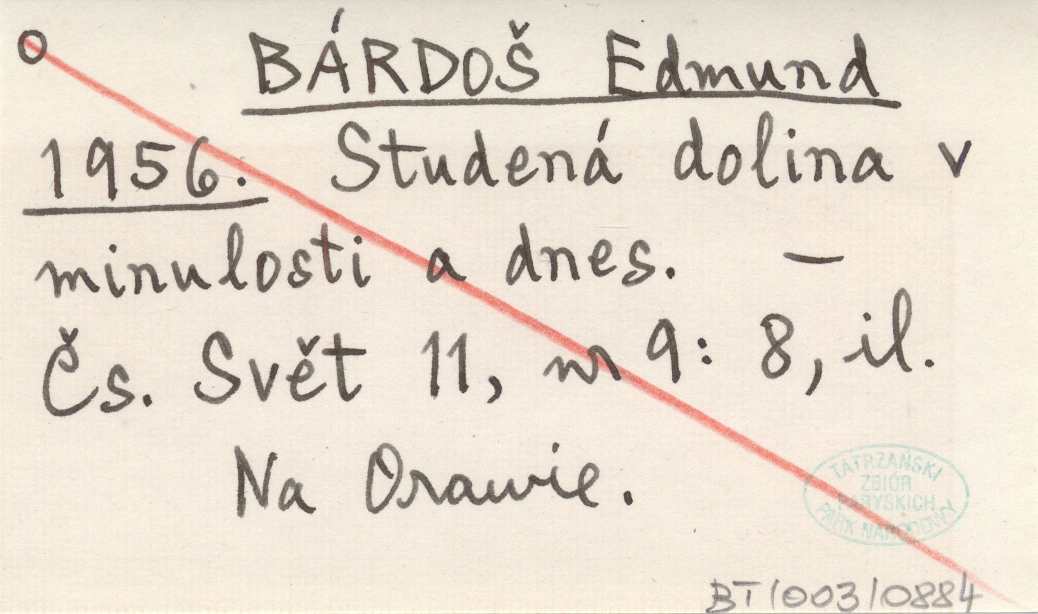 BÁRDOŠ Edmund 1956 Studená dolina v minulosti a dnes.