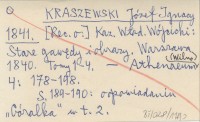 KRASZEWSKI Józef Ignacy 1841 [Rec. o:] Kaz. Wład. Wójcicki: Stare gawędy i obrazy. Warszawa 1840. Tomy 1-4.