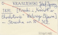 KRASZEWSKI Józef Ignacy 1871 [M. in. o Walerym Eljaszu.]