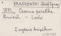 KRASZEWSKI Józef Ignacy 1871... Czarna perełka. Powieść.