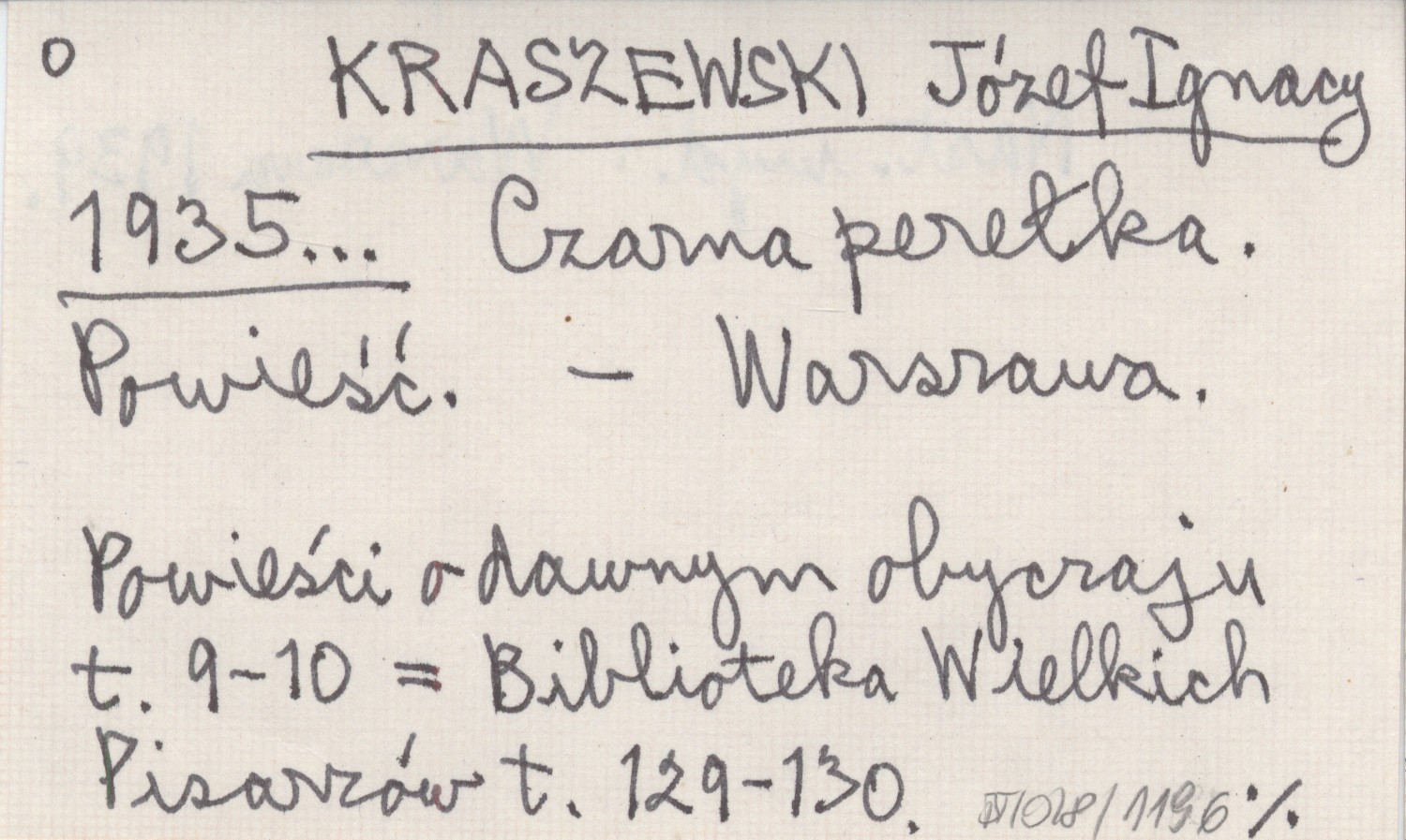 KRASZEWSKI Józef Ignacy 1935... Czarna perełka. Powieść.