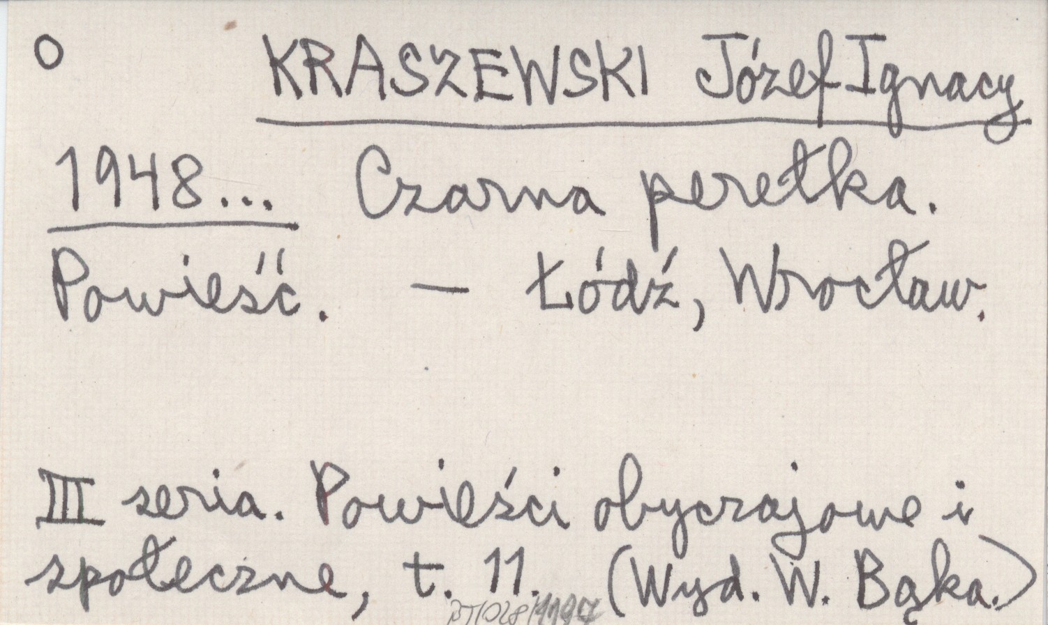 KRASZEWSKI Józef Ignacy 1948... Czarna perełka. Powieść.