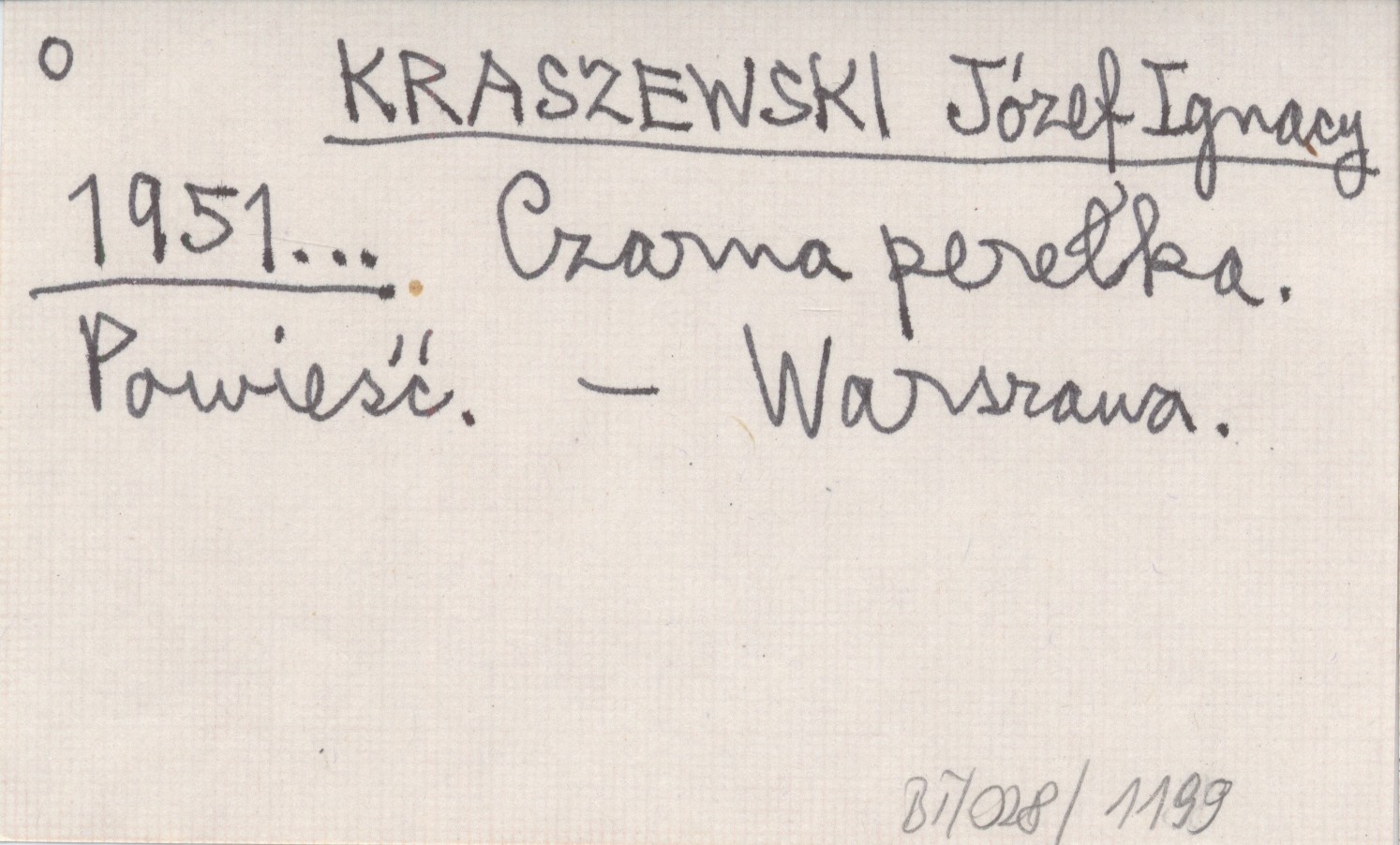 KRASZEWSKI Józef Ignacy 1951... Czarna perełka. Powieść.