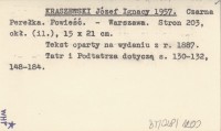 KRASZEWSKI Józef Ignacy 1951... Czarna perełka. Powieść.