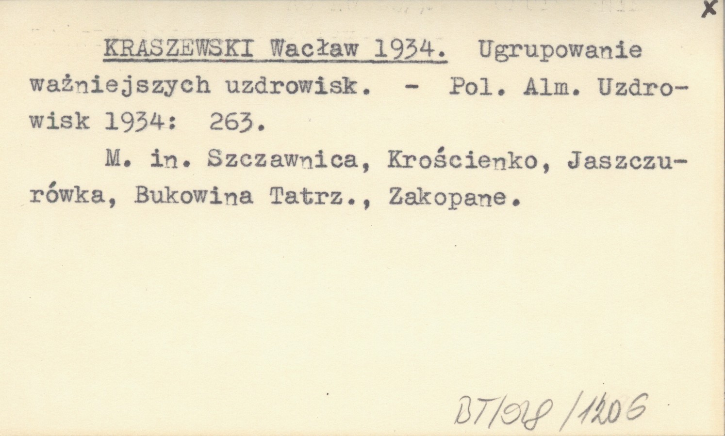Polski Almanach Uzdrowisk, S. 263. M. in. Szczawnica, Krościenko, Jaszczurówka, Bukowina Tatrzańska, Zakopane.