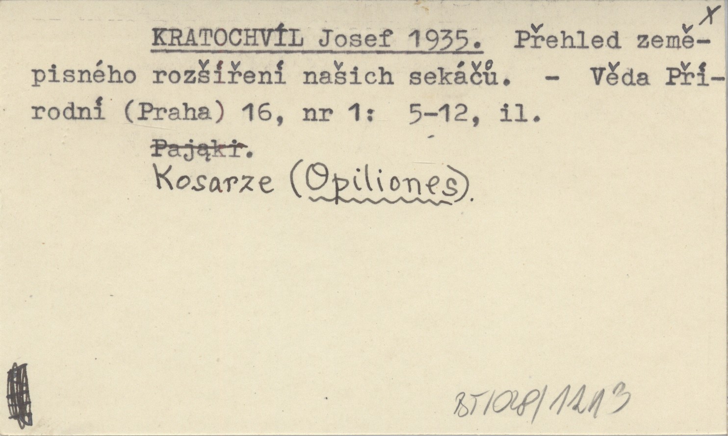 KRATOCHVÍL Josef 1935 Přehled zeměpisného roząíření naąich sekáčů.