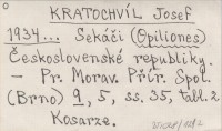 KRATOCHVÍL Josef 1934... Sekáči (Opiliones) Československé republiky.