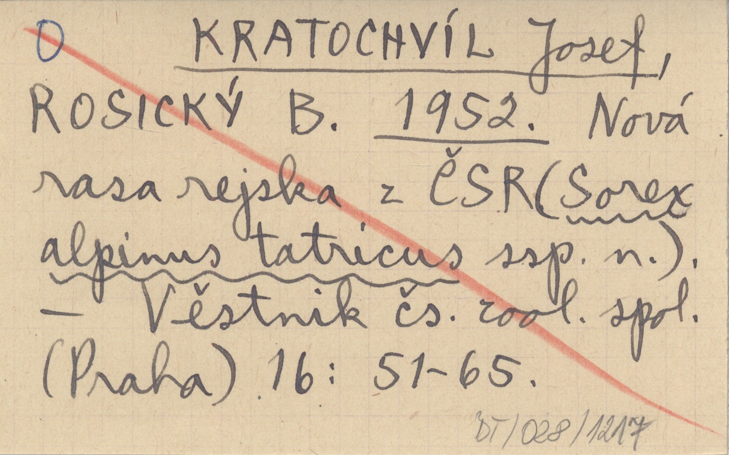 KRATOCHVÍL Josef ROSICKÝ, B. ; 1952 Nová rasa rejska z ČSR (Sorex alpinus tatricus ssp. n.).
