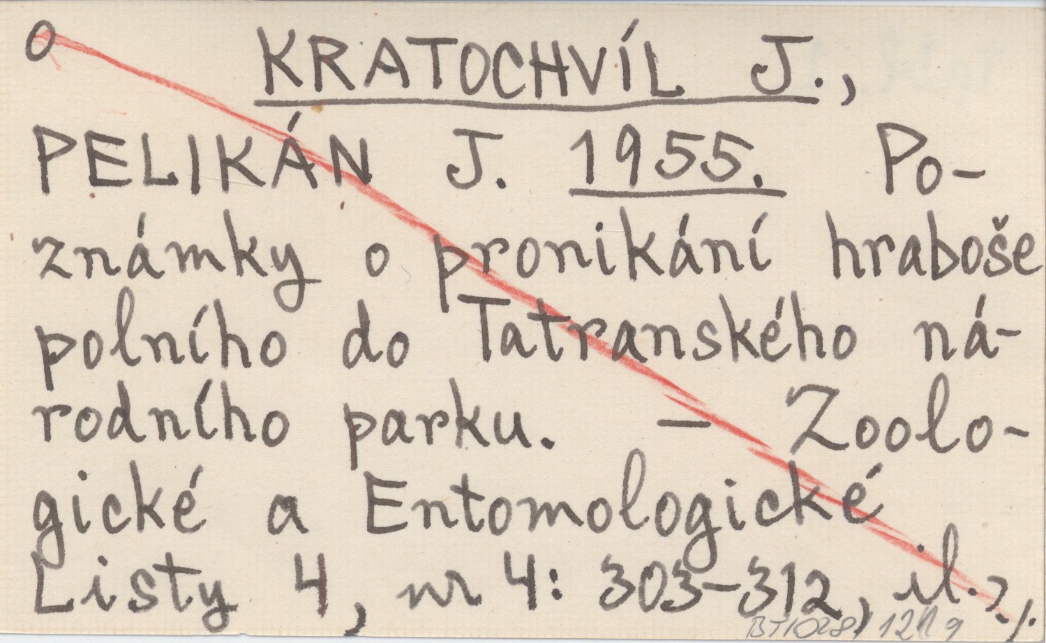 KRATOCHVÍL J. PELIKÁN, J. ; 1955 Poznámky o pronikání hraboąe polního do Tatranského národního parku.