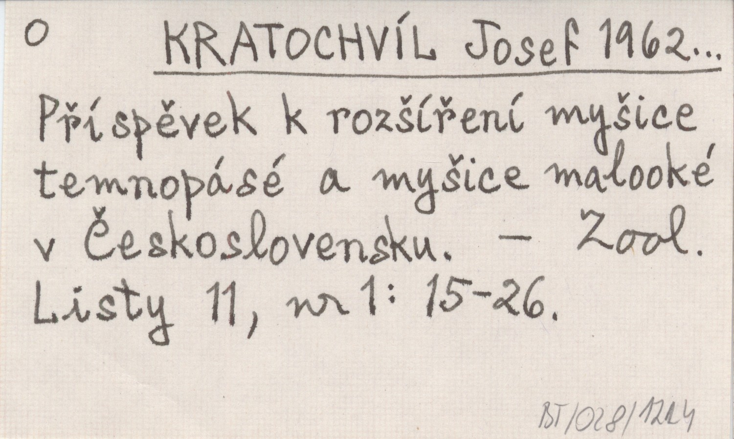 KRATOCHVÍL Josef 1962... Příspěvek k rozšíření myšice temnopásé a myšice malooké v Československu.