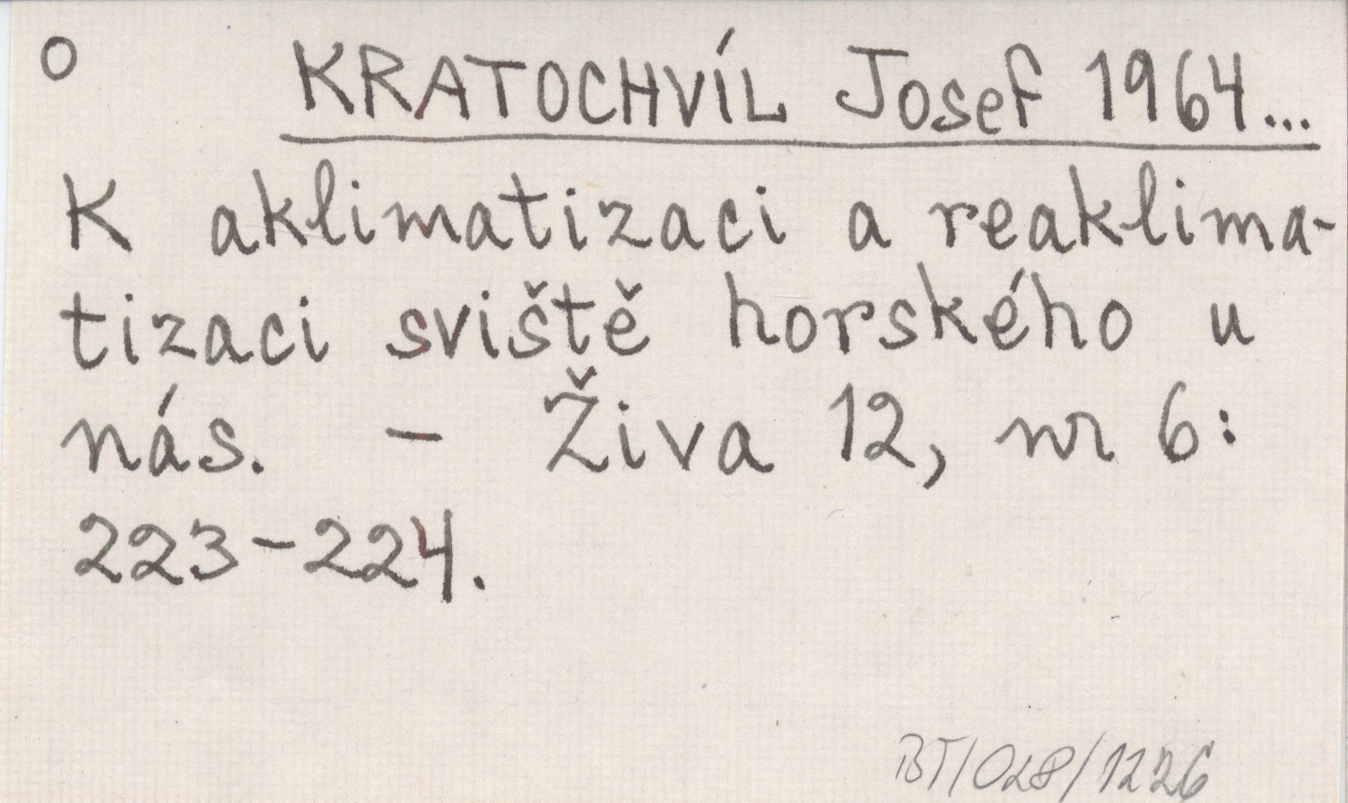 KRATOCHVÍL Josef 1964... K aklimatizaci a reaklimatizaci sviště horského u nás.