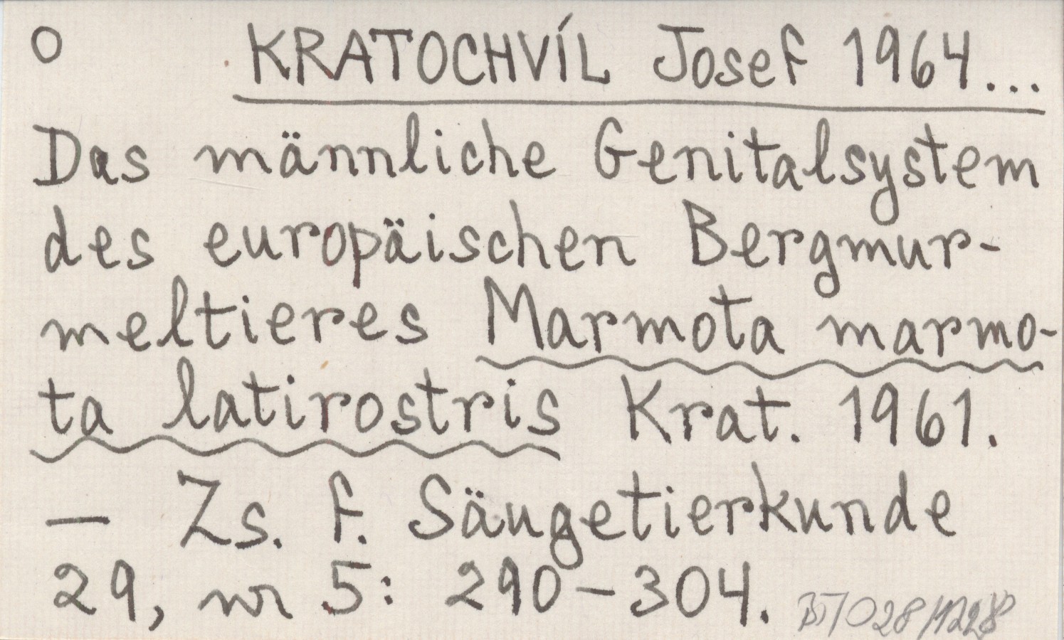KRATOCHVÍL Josef 1964... Das männliche Genitalsystem des europäischen Bergmurmeltieres Marmota marmota latirostris Krat. 1961.