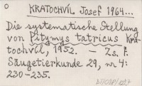KRATOCHVÍL Josef 1964... Die systematische Stellung von Pitymys tatricus Kratochvíl, 1952.