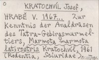 KRATOCHVÍL Josef HRABĚ, V. ; 1967... Zur Kenntnis der Analdrüsen des Tatra-Gebirgsmurmeltiers, Marmota marmota latirostris Kratochvíl, 1961 (Rodentia, Sciuridae).