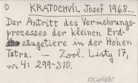 KRATOCHVÍL Josef 1968... Der Antritt des Vermehrung-prozesses der kleinen Erdsäugetiere in der Hohen Tatra.