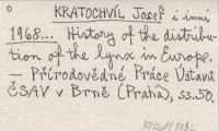 KRATOCHVÍL Josef i in. ; 1968... History of the distribution of the lynx in Europe.