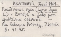 KRATOCHVÍL Josef 1969... Roząírenie rysa (Lynx lynx L.) v Európe a jeho perspektívna ochrana.