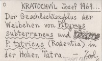 KRATOCHVÍL Josef 1969... Der Geschlechtszyklus der Weibchen von Pitymys subterraneus und P. tatricus (Rodentia) in der Hohen Tatra.