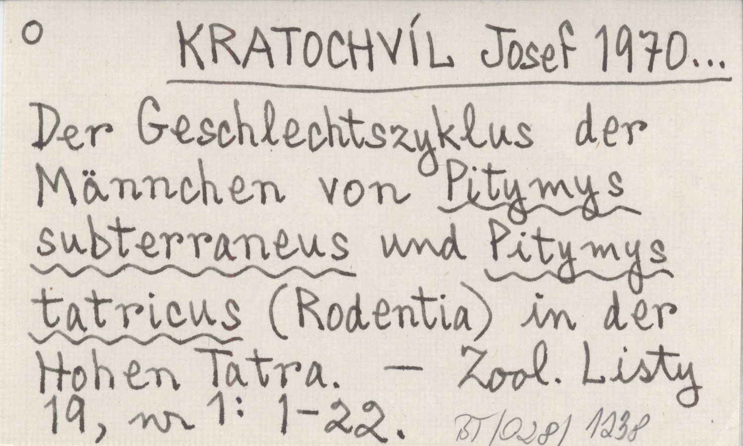 KRATOCHVÍL Josef 1970... Der Geschlechtszyklus der Männchen von Pitymys subterraneus und Pitymys tatricus (Rodentia) in der Hohen Tatra.